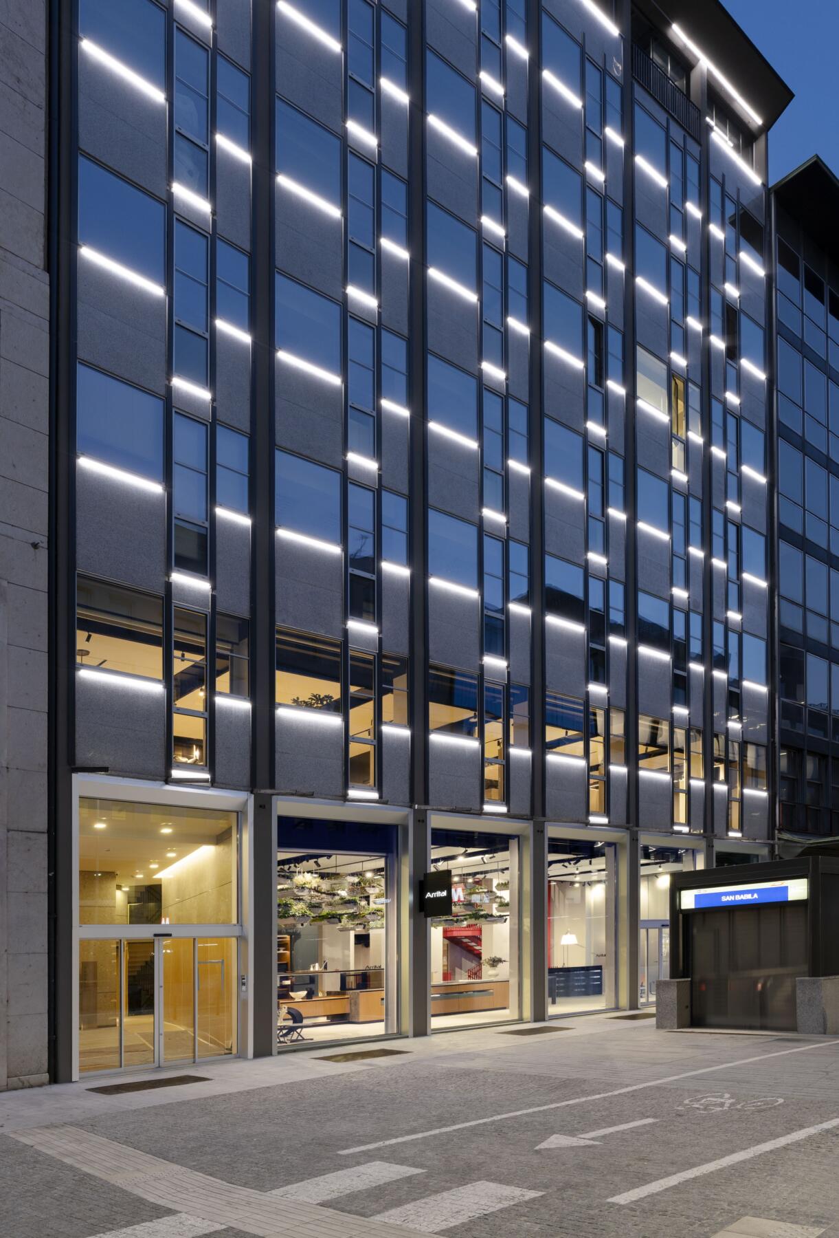 Progettato negli anni Cinquanta dall’architetto Vico Magistretti, l’immobile è parte del portafoglio del Fondo Immobiliare primo RE, gestito da Prelios SGR ed è stato oggetto di opere di ristrutturazione e riqualificazione, su progetto dello Studio Asti, che hanno riguardato le parti comuni, la facciata, lo spostamento dell’ingresso e il conseguente accorpamento delle porzioni retail, gli impianti e una sapiente valorizzazione del settimo e dell’ottavo piano, dove trovano posto gli uffici direzionali We.Do e il Busnelli Studio, brand del gruppo, e del completamento e rinnovamento dei sistemi e delle finiture esposte nello showcase Arrital, anch’esso brand del gruppo, al piano terra, primo piano e piano interrato. I nuovi uffici di We.Do beneficiano inoltre di un ulteriore spazio sul lastrico solare che è stato adeguatamente riqualificato da Prelios SGR, trasformandolo in un ambiente parzialmente chiuso con aree aperte.