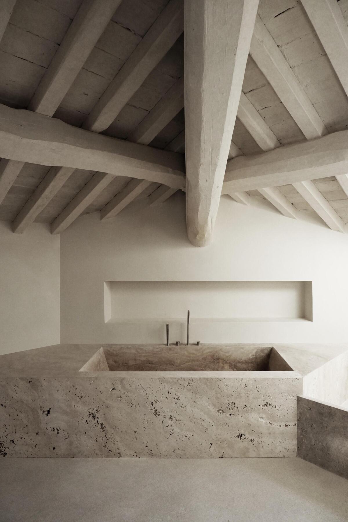 Nei lavabi in travertino della relax room, più soggetti a interazioni con sostanze acide come detergenti e cosmetici, è stato applicato TOTAL PROTECTION, un micro-coating antiacido e idro-oleorepellente che crea una barriera protettiva contro l’erosione chimica. La formulazione avanzata garantisce stabilità cromatica e facilità di manutenzione, permettendo una gestione più efficace della superficie nel tempo.