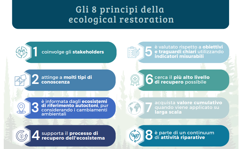 Il regolamento sul ripristino della natura (la Nature Restoration Law), approvato definitivamente dalla Comunità Europea lo scorso 17 giugno, si propone non solo di tutelare la natura ma restaurare gli ecosistemi degradati. Si stima che in Italia vi siano circa 85 differenti tipologie di ecosistemi e quasi 60 di queste non godono di buona salute. Per questa ragione è fondamentale sviluppare azioni di ripristino e restauro.
