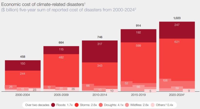Lo studio, intitolato The Cost of Inaction: A CEO Guide to Navigating Climate Risk, dimostra infatti che non si tratta di scenari remoti: dal 2000 a oggi, eventi estremi legati al clima hanno già causato 3.600 miliardi di dollari di danni economici – di cui 1.000 miliardi solo tra il 2020 e il 2024, più della metà dovuti a tempeste e uragani.
