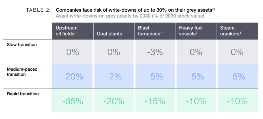 Il report di BCG e WEF distingue due tipi di minacce per le aziende. Da un lato, i rischi fisici, legati agli eventi estremi come uragani, incendi e siccità, che danneggiano infrastrutture, rallentano le produzioni e interrompono le supply chain. Dall’altro, i rischi di transizione, che derivano dall’aumento della carbon tax e dalla svalutazione degli asset legati ai combustibili fossili. Ad esempio, la domanda mondiale di carbone è destinata a diminuire del 90% entro il 2050, impedendo a qualsiasi impianto messo in funzione dopo il 2010 di raggiungere la fine del suo ciclo di vita, che è in media di 20-25 anni. Inoltre, nei prossimi due decenni le imprese più esposte vedranno i costi operativi lievitare e il valore di asset fossili calare fino a -35% già entro il 2030, con conseguenze in diverse industrie.