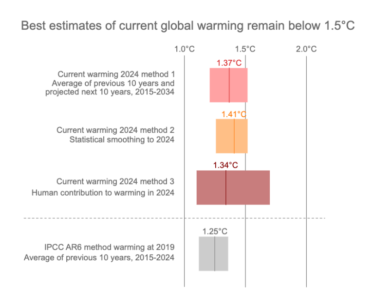 Il rapporto ha affermato che l’aumento globale a lungo termine della temperatura è attualmente stimato tra 1,34° e 1,41°C rispetto al periodo 1850-1900.
