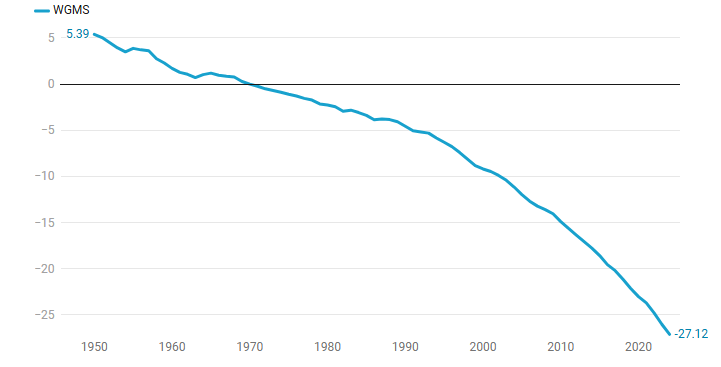 Bilancio cumulativo di massa dei ghiacciai 1950-2024