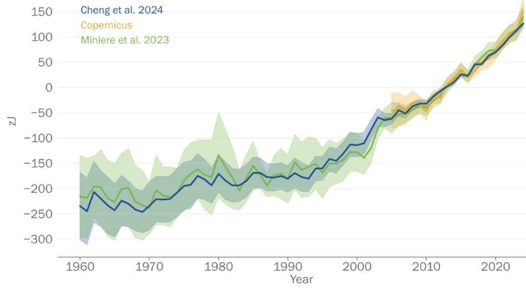 Contenuto annuale di calore degli oceani globali fino a 2000 m di profondità per il periodo 1960–2024