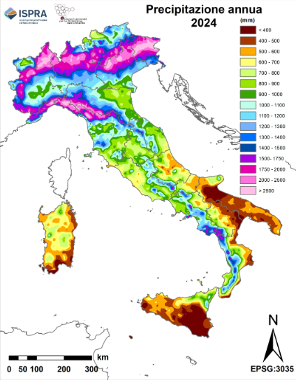 Il 2024 è risultato un anno molto piovoso, con il volume totale annuo di precipitazioni che è stato stimato in circa 319 miliardi di metri cubi, corrispondenti a 1.056 mm, superiore di oltre il 10% alla media annua riferita all’ultimo trentennio climatologico 1991-2020, stimata in circa 285 miliardi di metri cubi, ovvero 951 mm. Febbraio è stato il mese più piovoso, con un aumento del 72% rispetto al valore medio relativo al trentennio 1991-2020, a differenza di novembre, che ha registrato una diminuzione del 72% rispetto alla media climatologica. Sono questi alcuni dei dati che emergono dal BIGBANG, il modello nazionale di bilancio idrologico di ISPRA che fornisce il quadro quantitativo sulla risorsa idrica dal 1951 in poi, inclusi i deficit, gli eccessi di precipitazione e i trend delle grandezze idrologiche, tra precipitazioni, deflussi e evapotraspirazione, necessari a caratterizzare la situazione attuale e futura nel Paese.