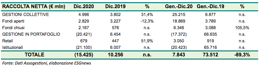 L’industria del risparmio gestito, sulla base dei dati preliminari, archivia il 2020 con una