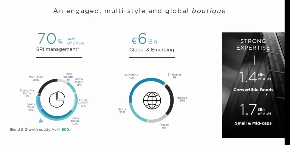 “Il 70% del risparmio gestito di Natixis è indirizzato alla gestione SRI, cioé allineato con quanto previsto dalla normativa SFDR, con il 64% degli investimenti riferiti all’art. 8 e il restante 6% all’art. 9”, ha dichiarato Lea Dunand-Chatellet, Head of Responsible Investment di DNCA Finance. “La società ha inoltre investito 6 miliardi di euro nell’ambito “Global & Emerging”, e il label SRI riguarda il 60% del risparmio gestito di DNCA”, ha aggiunto Dunand-Chatellet.