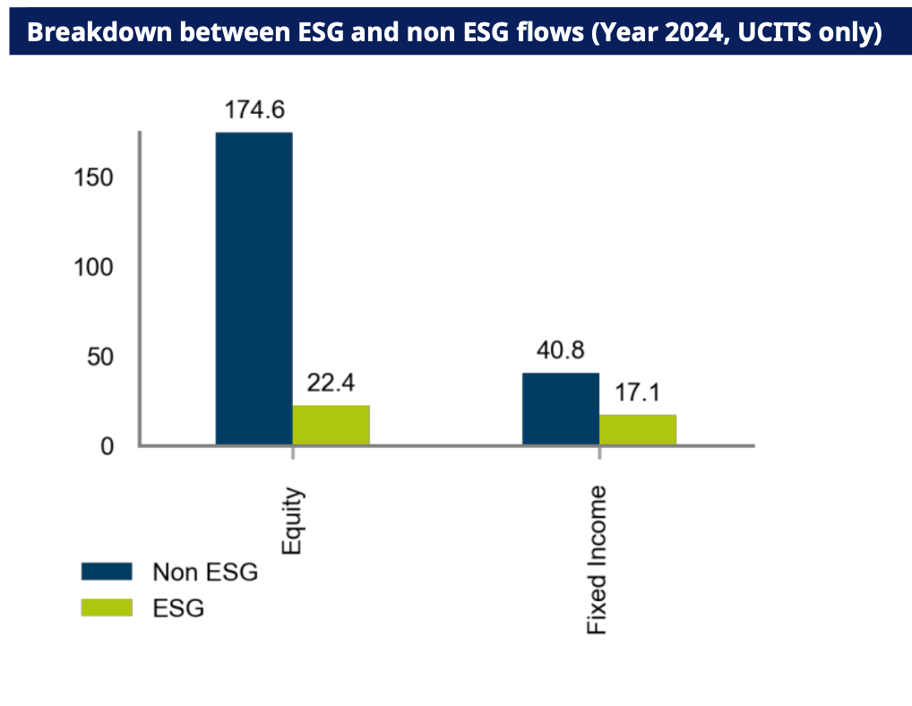Le strategie azionarie ESG hanno raccolto 22,4 miliardi di euro nel corso dell’anno, ovvero poco più del 10% della raccolta azionaria complessiva del 2024.