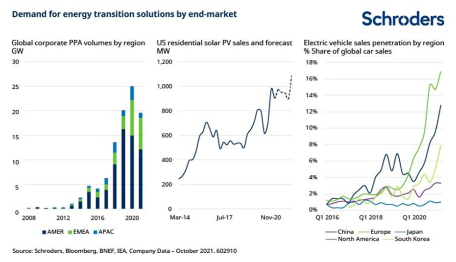 Anche se i pacchetti infrastrutturali del Presidente Biden sono attualmente in stallo al Congresso, è probabile che passeranno con qualche modifica. Insieme alle politiche dell’UE e i target sempre più ambiziosi della Cina, le politiche a supporto della transizione energetica continuano a crescere.