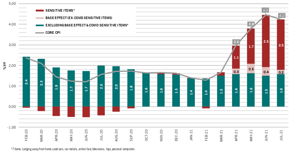 Fig. 4: US core CPI – contributi delle componenti condizionate dal COVID ed effetto base