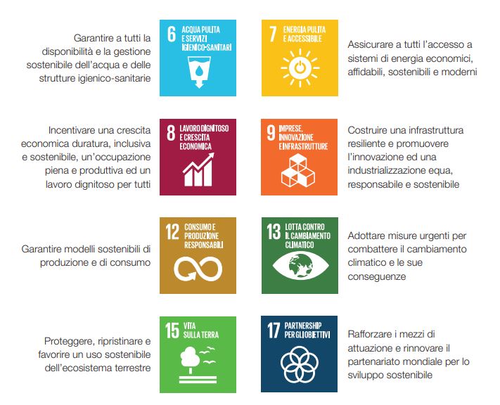 Questi obiettivi primari condivisi da stakeholder e nel piano industriale sono inclusi anche in 8 dei 17 Obiettivi per lo Sviluppo Sostenibile (SDGs) che la società ha scelto tra i più coerenti con la vision e mission aziendali.