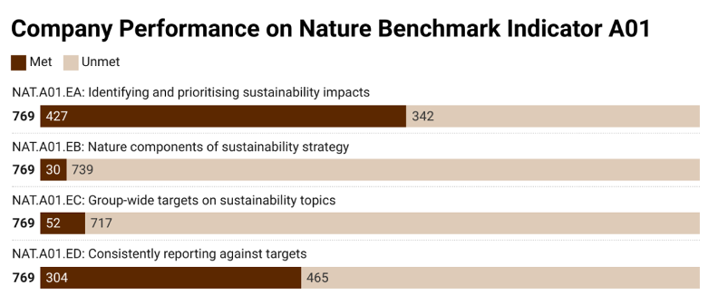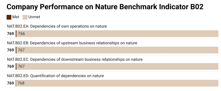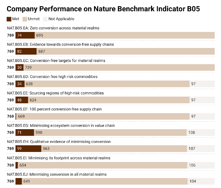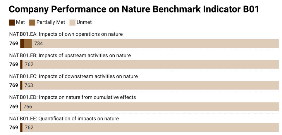 Il Nature Benchmark analizza le informazioni divulgate dalle aziende per valutare le loro pratiche in relazione a più di quaranta indicatori. Nell’analisi, però, gli autori ne considerano sei