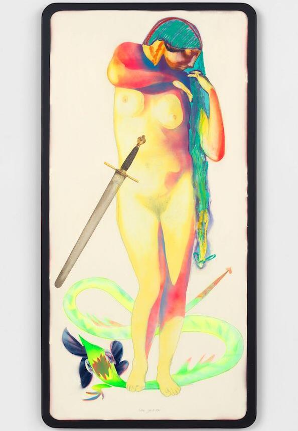 L’iconografia, seppur immaginifica e visionaria, appartiene alla storia dell’arte Occidentale: Adamo ed Eva, la cacciata dal paradiso, l’isolamento, la tentazione, la caduta e la rinascita. Angeli e diavoli prendono le sembianze di giovani teengeer e viceversa. I serpenti, come si vede in the Justice, si trasformano in buffi vermi comix che circondano la figura, e non c’è dramma ma divertimento e gioco.