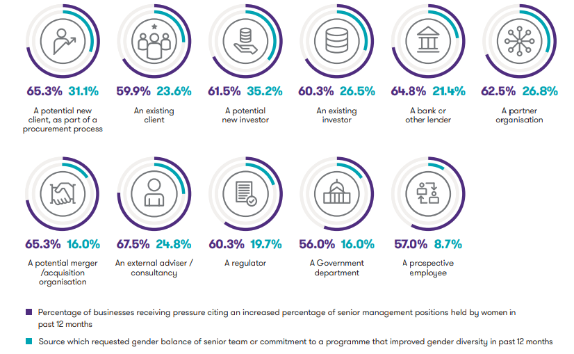 La tendenza, poi, si conferma anche nel resto del mondo: il 77,6% delle imprese, infatti, ha affermato di aver ricevuto richieste dirette per dimostrare l’effettivo impegno per l’abbattimento della disparità di genere, con la risposta da parte del 56,3% di queste che ha aumentato la quota femminile nei ruoli dirigenziali.